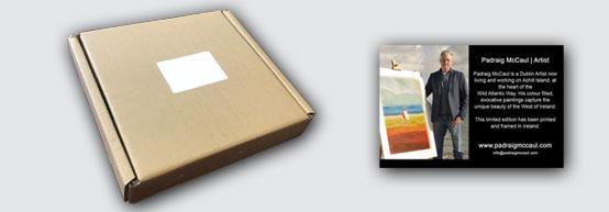Our custom Printed stickers are available in a range of sizes. They are used for promotional purposes on our die cut box range as well as on the back of mounted art prints or even framed pieces.